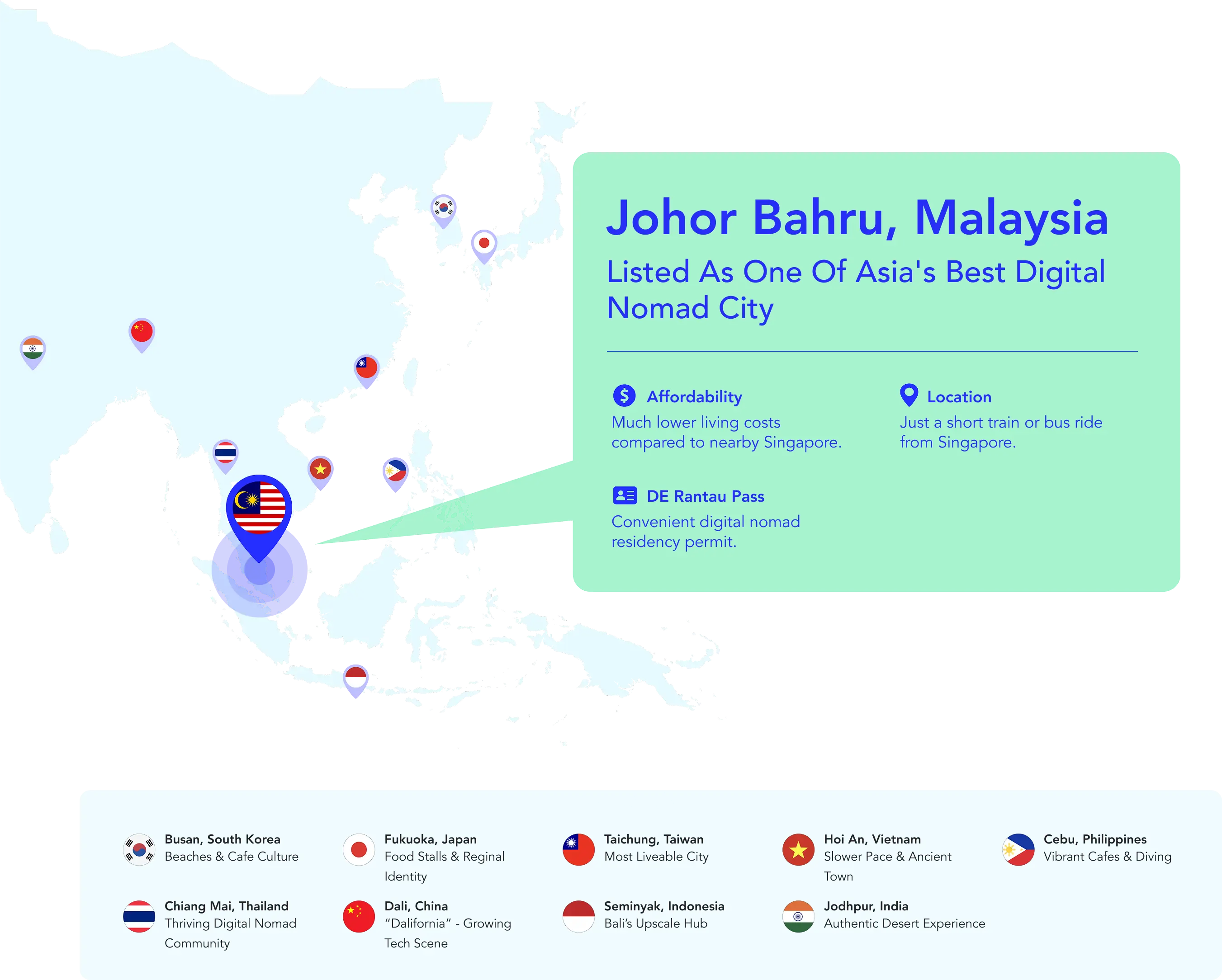 Once overshadowed by Kuala Lumpur and Singapore, Johor now attracts talent like a magnet. Digital nomads ranked it the best city in 2024, drawn to its enviable mix of urban lifestyle and affordability. The state combines relatively low living costs, proximity to Singapore, and growing digital infrastructure to create an ideal home for skilled professionals seeking balance.